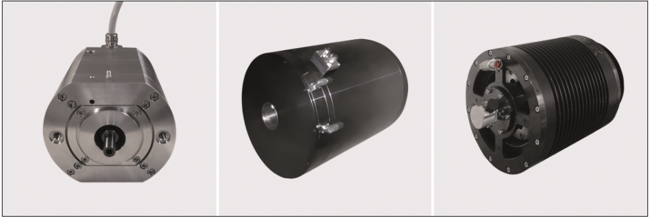 links: Schnelllaufender Direktantrieb, 14.000 U//min, Abmessungen 130x130mm, Masse 10kg bei 20kW