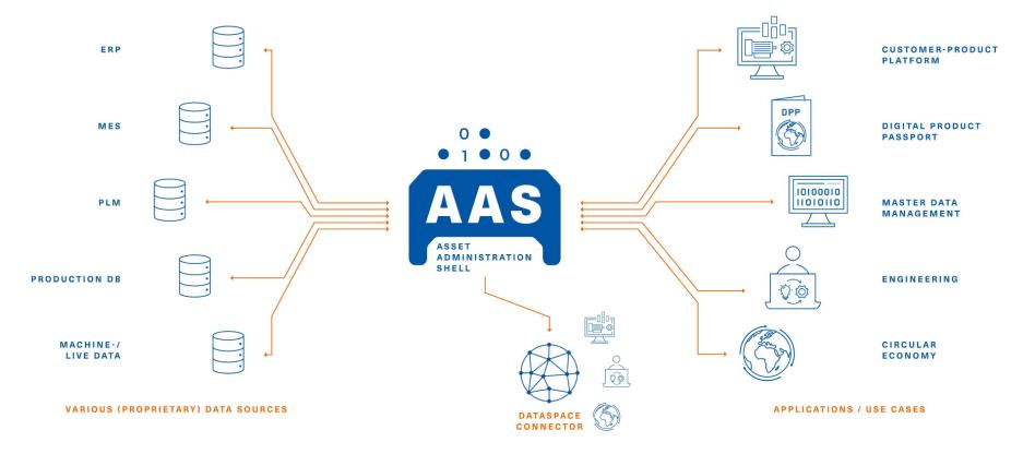 Der standardisierte Digitale Zwilling verbindet physische Industrieprodukte mit der digitalen Welt. Die Kerntechnologie zur Umsetzung in der Industrie ist die Verwaltungsschale (englisch Asset Administration Shell, kurz AAS), die alle relevanten Informationen eines physischen Assets beinhaltet. Hierzu zählen Dokumente ebenso wie Daten und Funktionalitäten. All diese Informationen werden über den gesamten Lebenszyklus bedarfsgerecht zur Verfügung gestellt – von der Herstellung über die Inbetriebnahme, den Betrieb, die Wartung bis hin zum Recycling oder der Außerbetriebnahme. Aktuelle Security-Anforderungen werden hierbei stets berücksichtigt und eingehalten.