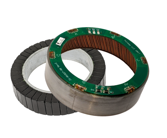 Bausatzmotoren, auch bekannt als Einbaumotoren oder Kitmotoren, sind Motoren ohne eigenes Gehäuse und eigene Lagerung. Es sind in anderen Worten die Aktivteile eines Motors. Der Kunde bekommt als Bausatz einen Rotor und einen Stator. Somit kann der Kunde den Motor flexibel in seine eigene Mechanik oder Anwendung integrieren. In vielen Fällen sind Bausatzmotoren als Torquemotoren ausgelegt. Torquemotoren sind Motoren, dessen Geometrie speziell auf hohe Momente statt auf hohe Leistungsabgabe hin optimiert ist. Die Bauform des Torquemotors ist daher eher kurz mit großem Durchmesser. Damit die Kupferverluste und elektrischen Zeitkonstanten klein bleiben, haben diese Motoren auch mehr Pole als konventionelle Servomotoren. Es gibt eine Reihe von Gründen, diese moderne Antriebstechnik einzusetzen - sowohl für rotatorische als auch für lineare Bewegungen.