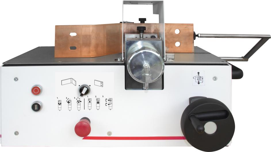The busbar bending and punching machine from Alfra/Rittal Automation Systems ensures that copper busbars fit precisely into the enclosure according to plan – thanks to an electric angle reader, bending die and length stop. The BS 120 CU has two functions:
