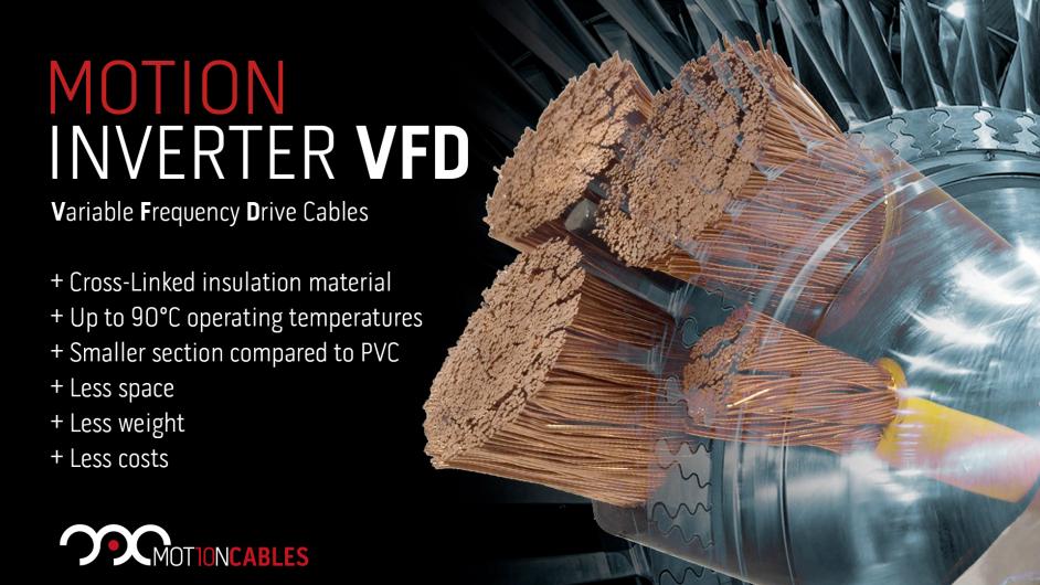 MotionCables has developed a specific cable design for Variable Frequency Drives. Motion Inverter VFD cables are used to control the frequency of the electrical power supplied to AC motors. Our VFD cables are designed to provide complete EMI screening and resistance to high voltage spikes so as to extend the operating life of the cable or motor.