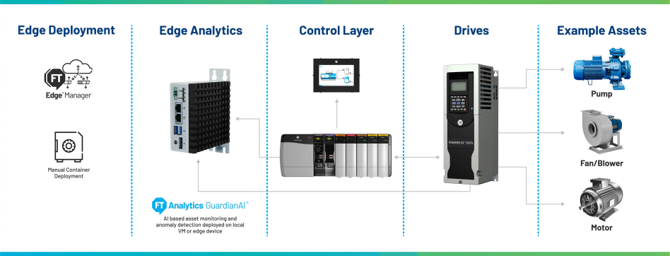 There’s no need to purchase additional sensors or monitoring equipment. With FactoryTalk Analytics GuardianAI, early warnings of potential asset failures are provided using variable frequency drive (VFD) data. FactoryTalk Analytics GuardianAI provides premier integration with PowerFlex 755, 755T and 6000T drives, leveraging electrical signal data for condition-based monitoring of pump, fan, and blower applications.