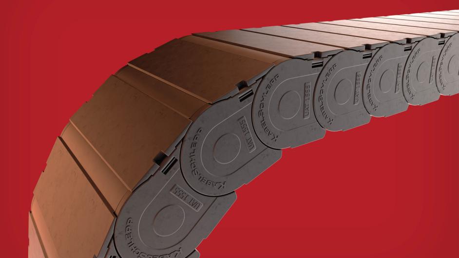 The UAT1555 cable carrier provides outstanding protection for the routed cables and hoses. It has been developed for harsh environmental conditions with chips, dirt and dust and effectively prevents foreign bodies from entering the cable space.